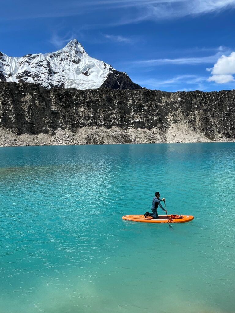 Have you ever imagine gliding across the serene lakes of the Cordillera Blanca? While traditional surfing may not be an option, paddling certainly is! Picture yourself immersed in the tranquil turquoise waters, enveloped by majestic mountains in a sunny day. Lakes like Keushu, Chinancocha, Cancaracá, Rocotuyoc, or Pampacocha beckon adventurers seeking such unforgettable experiences.